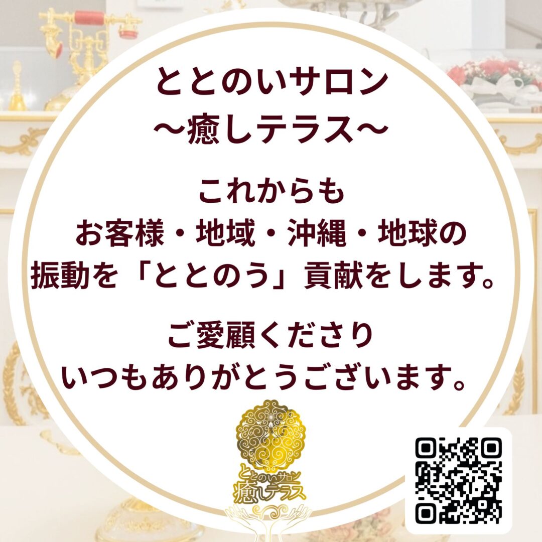 blog, フジクミ店長のととのいブログ, 琉球・地球(49)サミット お得意様のリアルなお話〜起業1年で年商1億円に〜その秘訣とは!? 2025-10-11 / No Comments ととのいサロン〜癒しテラス〜店長ふじくみです♪ いつもブログにお越しくださりありがとうございます! 読んでますって言われると心の中でめちゃ喜んでます笑 今回は癒しテラスでのみご購入いただけるロゴストロンアイテムのご紹介しちゃいます♪ 人・場・地域をイヤシロチにする紅型言玉手箱〜琉宮 RYUKYU〜 〜毎月定期購入して頂いてる社長は起業1年目で年商1億に〜 という奇跡が起きるのがロゴストロンアイテム。 (癒しテラスに実際お越し頂いているお客様のお話です♪) 奇跡の起こし方には『与えれば与えられる』と言う作用機序があるのですが それを素直に実践されているKさん。 職場環境をイヤシロチにするためひいては沖縄をイヤシロチにするために 紅型言玉手箱〜琉宮 RUKYU〜を毎月10個ご購入され職場のお部屋の四隅に置かれているようです。 空間が清々しくなり呼吸もしやすくなりお客様も良い方ばかりに変わったとのことでクレームも無くなったそうです。 お客様だけでなく従業員の皆様も氣持ちの良い空間にてお仕事ができて、以前より仕事の効率も良くなったとのことです♪ また取引先もどんどん増えて今では猫の手も借りたいぐらいに日々充実されていらっしゃるとのこと! 周波数が変われば、自ずと収入も変わります。 それが器が広がるということです。 何をやってもうまくいかない。お金が廻らなく、なぜか無くなる一方・・ 実は、案外知らず知らずのうちに奪ってばかりかもしれません。 紅型言玉手箱〜琉宮 RYUKYU〜はDNA・空間・土地に残っている情報をクリーンに祓い清める 情報の清浄機みたいなもので 吸い取るだけではなく 健康、人間関係、金運アップなどの個の願望から 全人類の先祖供養や地球の平安清明などの公の願望まで 空間に漂う濁った情報を吸収して豊かな情報に書き換えるのが特徴なのです! 個人も地球も笑顔にするそんなアイテムがロゴストロン。 言語研究機関のneten株式会社様が故七澤賢治氏の意志を受け継いで日々研究開発されている全人類、万物全ての恒久平和のためのアイテムです。 なので、毎月定期購入されているKさんが右肩上がりで仕事が上手くいくのも納得ですね! わたしもギブ&超ギブの精神で愛を与えて、愛を広げていく器になりますー♪(乞うご期待笑) 紅型言玉手箱〜琉宮 RUKYU〜はととのいサロン〜癒しテラス〜でのみ販売しています。 また、各部屋の四隅に置いてますので心身だけでなく潜在意識や周波数もととのっちゃう♪ ぜひご家庭や職場環境を穏やかに清々しい空間にしたい方にオススメです♪ まずは、癒しテラスに来てみてください♪ 只今開店1周年謝恩キャンペーン中〜(11月末まで) 0 0 votesArticle RatingShare and Enjoy !Shares