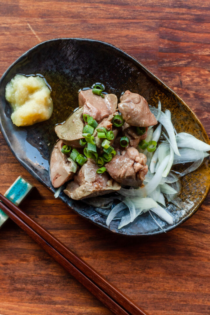 まず最初にシャッターを切るべきは、この一皿だ。 「やみつき鶏レバー」。