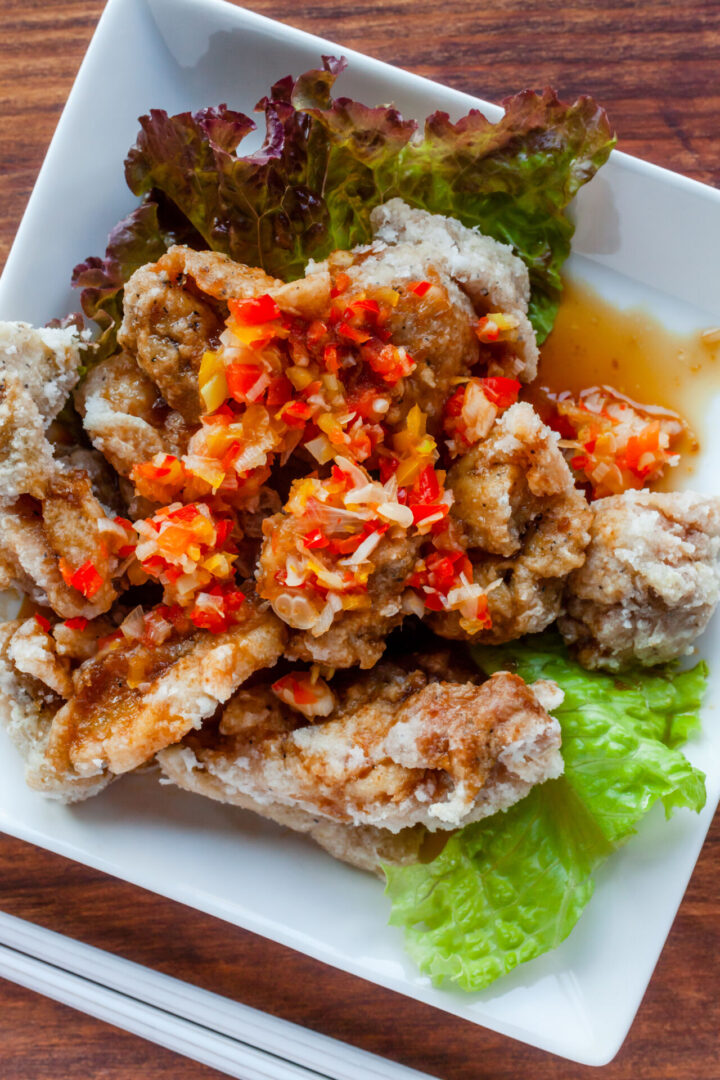 ② 炸裂する肉汁のフラッシュ【油淋鶏(ユーリンチー)】