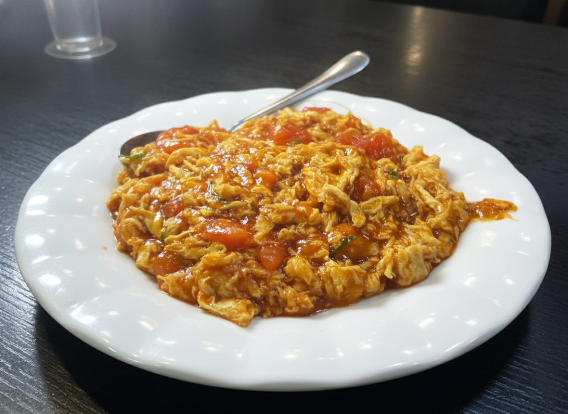 最後はこいつで締めだ。トマトと玉子、一見すると優等生なコンビ。 だがな、そこに『チリソース』という名のスパイスをぶち込むのが福楽流だ。 ふわっふわの玉子が口の中でとろけたかと思えば、トマトの甘酸っぱい汁が溢れ出し、最後にチリのピリッとした刺激が喉を駆け抜ける。 この緩急……まるで人生そのものじゃねぇか。