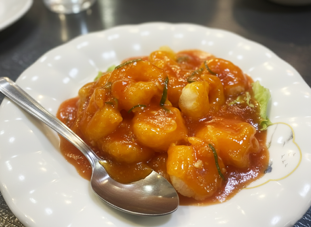 • エビチリ:炎のような紅いソースに踊る、大ぶりの海老。口の中で弾ける強烈な弾力と、甘みの後にくるピリッとした挑発。まさに王道の風格だ。