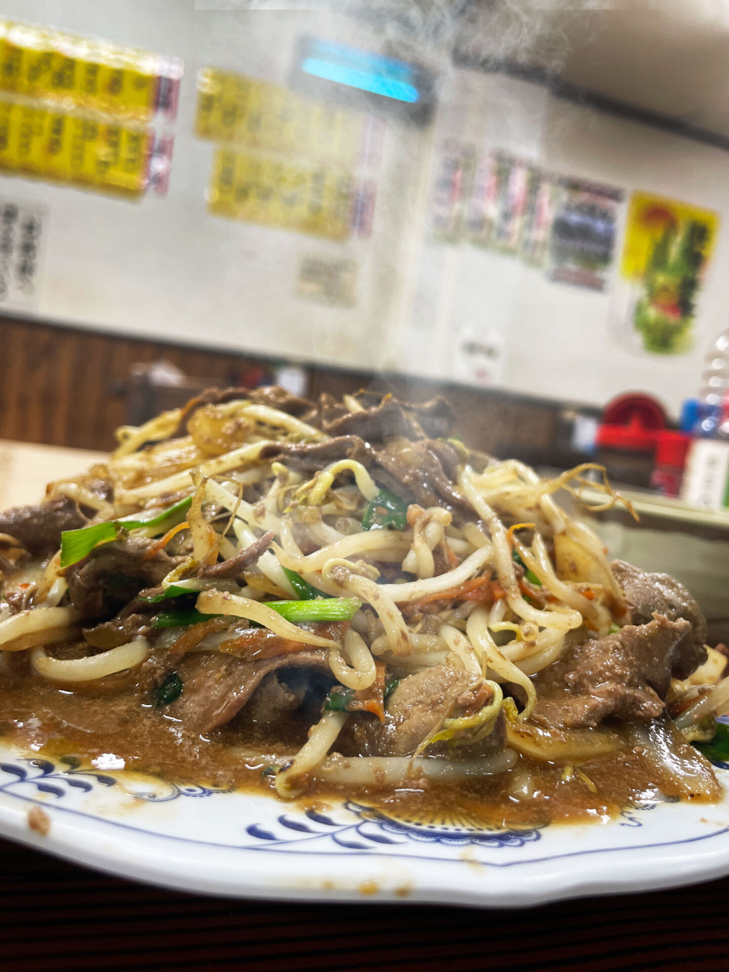 さあ、本日のメインイベントだ。 運ばれてきた瞬間、俺の前に現れたのは、皿から溢れんばかりの『もやしの断崖絶壁』。