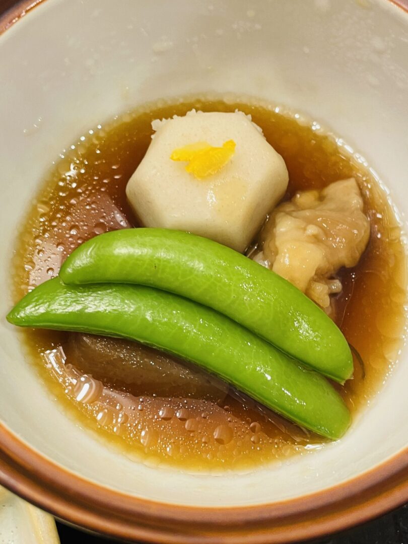 そして、忘れてはならねぇのが『煮物』の存在だ。 派手さはねぇ。だが、この煮物こそが、この膳の『精神的支柱』と言ってもいい。 透き通るような出汁を含んだ野菜たち。 一口噛めば、ジュワッと溢れ出す優しい滋味……。 鰻の『剛』の旨味を、この煮物の『柔』が見事に受け止め、口の中をリセットしてくれる。