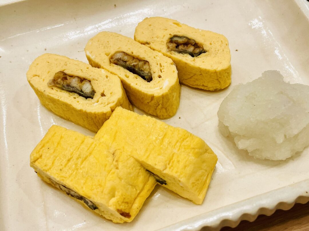 メインを待つ間の焦らし……いや、プロローグにはこいつが欠かせない。 ふっくらと焼き上げられた出汁巻き卵の布団に、鰻が優しく抱かれている。 卵の滋味深い出汁と、鰻の濃厚な脂が口の中で混ざり合う瞬間……。 ビールか? それとも冷酒か? 昼間からそんな葛藤に苛まれるのも、ここが『彦』だから許される贅沢だ。