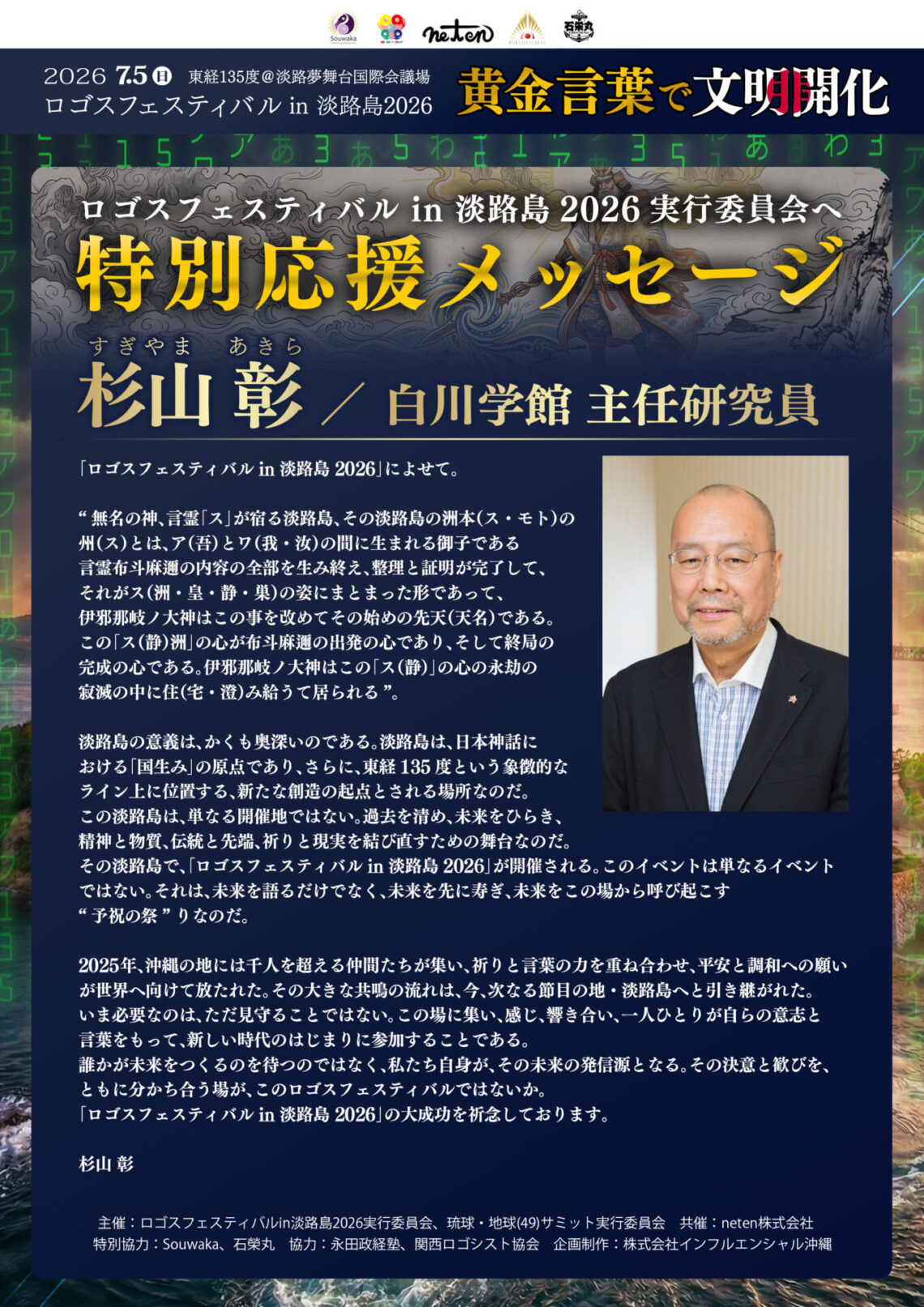 「ロゴスフェスティバル in 淡路島 2026」の大成功を祈念しております。 杉山 彰