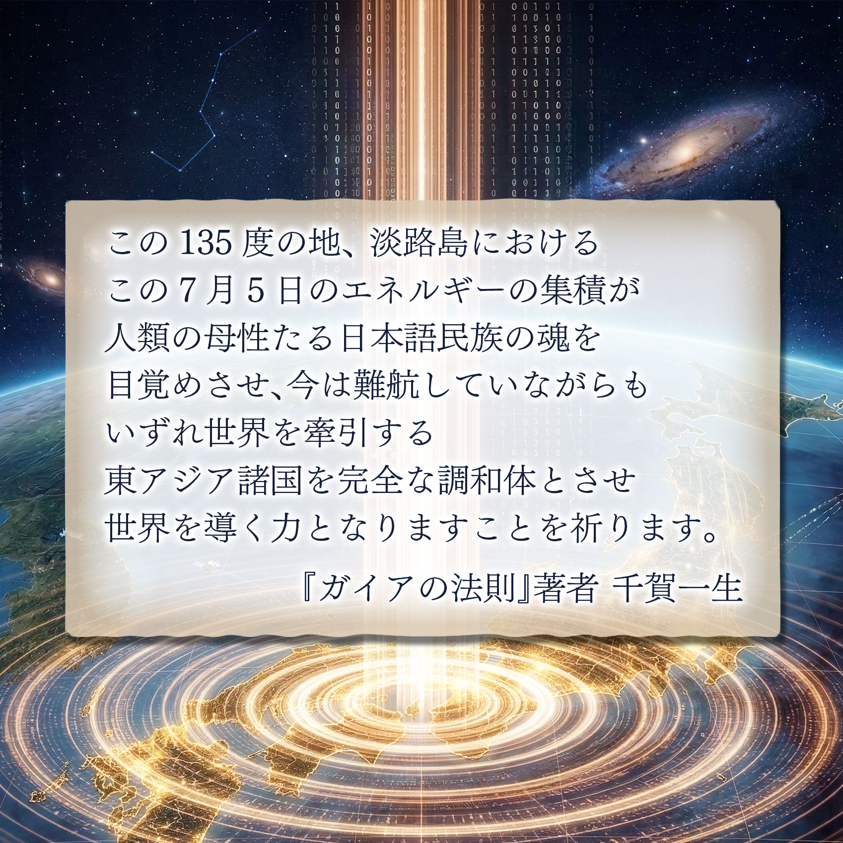 「ガイアの法則」に基づき、東経135度の聖地・淡路島は今まさに世界の中心地へと変貌を遂げる。